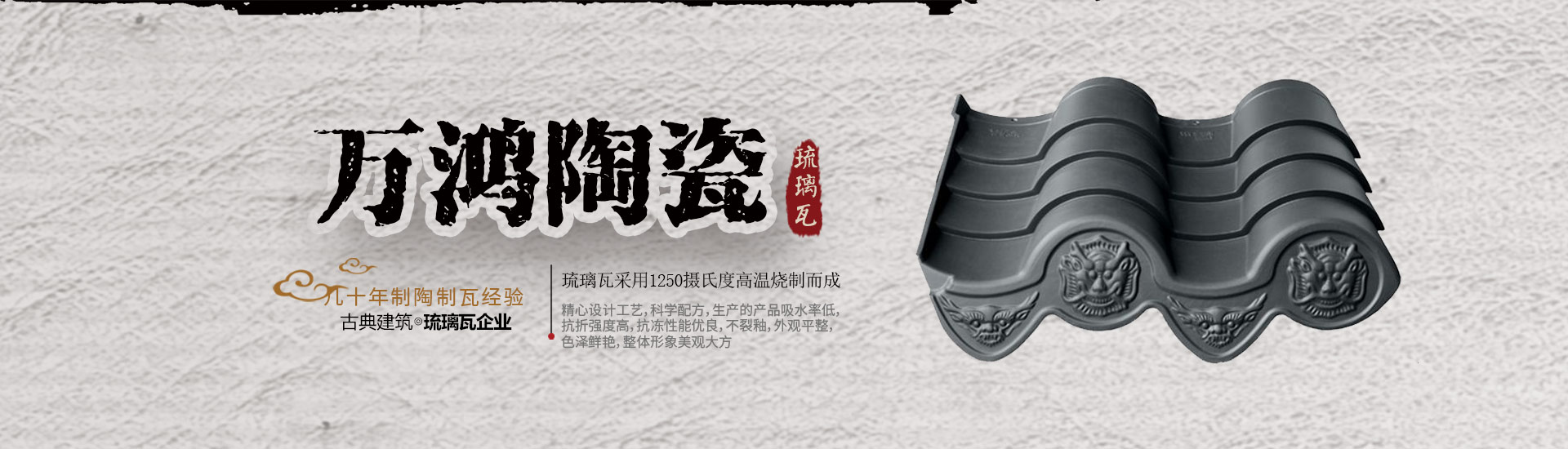 宜興市萬(wàn)鴻陶瓷有限公司是國(guó)內(nèi)生產(chǎn)古建琉璃瓦企業(yè),也是宜興市琉璃瓦行業(yè)龍頭骨干企業(yè)。琉璃瓦采用1250攝氏度高溫?zé)贫桑咀浣?jīng)濟(jì)發(fā)達(dá)的宜興市丁山鎮(zhèn),臨近寧杭高速公路、新長(zhǎng)鐵路、錫宜高速和104國(guó)道,交通十分便利?! ∪f(wàn)鴻陶瓷擁有幾十...